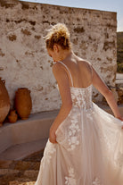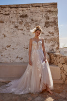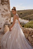 Tulle A-Line Gown with Plunging Bikini Neckline and Lace Appliqués