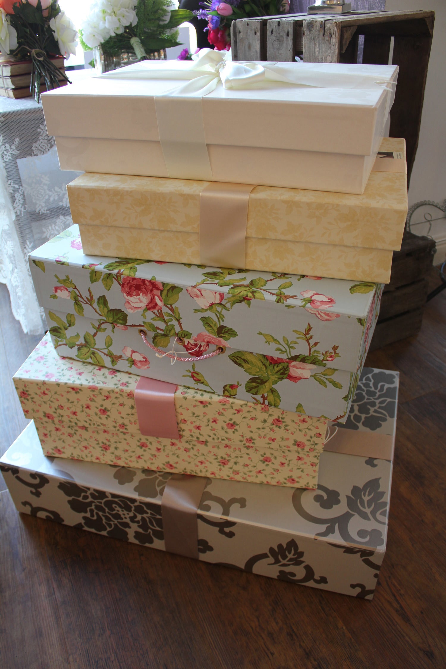 After your wedding, why not ask us to clean and box your dress? It is better to carry this out as soon after your wedding as possible. Here are a few example of the boxes you can choose from to store your dress in, with acid free paper, the perfect way to prolong the life of your dress.